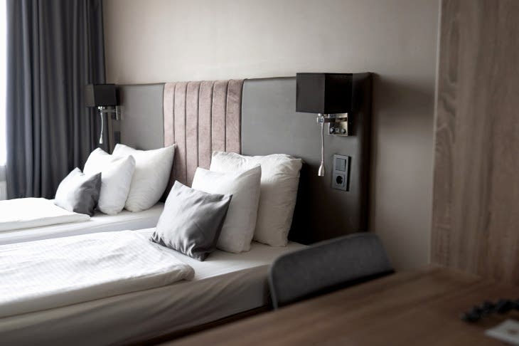 Нашиклассические номераоформлены в теплых пастельных тонах и предлагают выбор между двуспальной или двумя односпальными Laimz