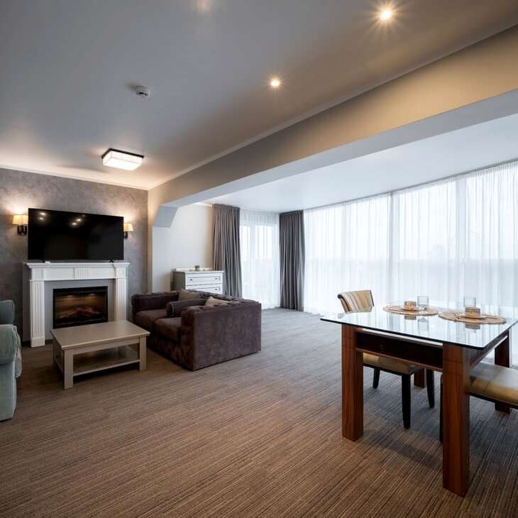 Окна от пола до потолка и отдельный балкон открывают панорамный вид на Старый город и парк, делая ваше пребывание захватывающими дух пейзажами.